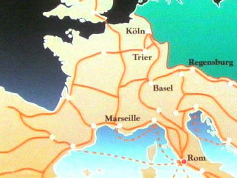 Straßen gehören zu den großen technischen Leistungen der Römer. Wie die Via Appia (von Rom nach Brindisi), so werden einige römische Straßen noch heute benutzt. Die Hunsrückhöhenstraße z.B. Iiegt auf einer römischen Straße. Eine Karte (z.B. in: Römer in Baden-Württemberg, S.58) ermöglicht den Schülern, Tradition und Wandel von Römerstraßen nachzuvollziehen. Kaiser Augustus ließ entlang der großen Straßen Stationen (statio, stabulum, mansio, mutatio genannt) einrichten. Hier fanden die Amtspersonen Unterkunft. Dieschnellen Kuriere schafften an einem Tag mit Pferdewechsel an die 5 bis 8 Umspannstationen, 71 bis 88 km von mansio bis mansio. An den Straßen informierten sich Reisende und Kuriere an Meilensteinen, wie weit es noch bis zur nächsten Station oder Siedlung war. Die Entfernung wurde in Meilen (eine röm. Meile = 1.478 m) oder - im germanischen Raum - in Leugen (eine keltische Leuge = 2.220 m) angegeben. Auch der Name des Kaisers, der sich um den Ausbau der Straße verdient gemacht hatte, stand auf solchen Steinen zu lesen. Damit waren die Meilensteine ein wichtiges Propagandamittel für den jeweiligen Kaiser.